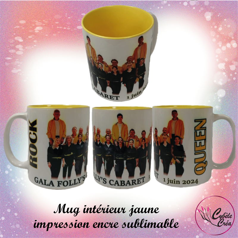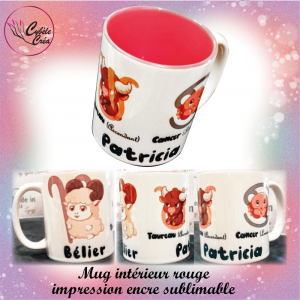 - Mug en céramique extérieur blanc intérieur couleur (jaune, vert clair, vert foncé, rouge, rose, bleu clair, bleu foncé, orange et noir)