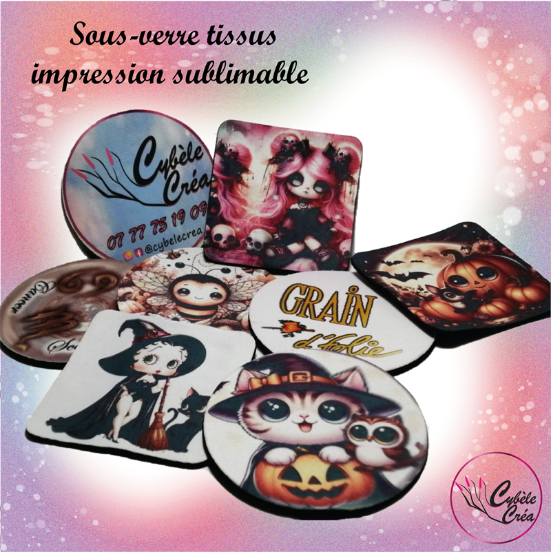 - Sous-verre en tissu de 10 cm divers formes (rond, carré, fleur et hexagonale)