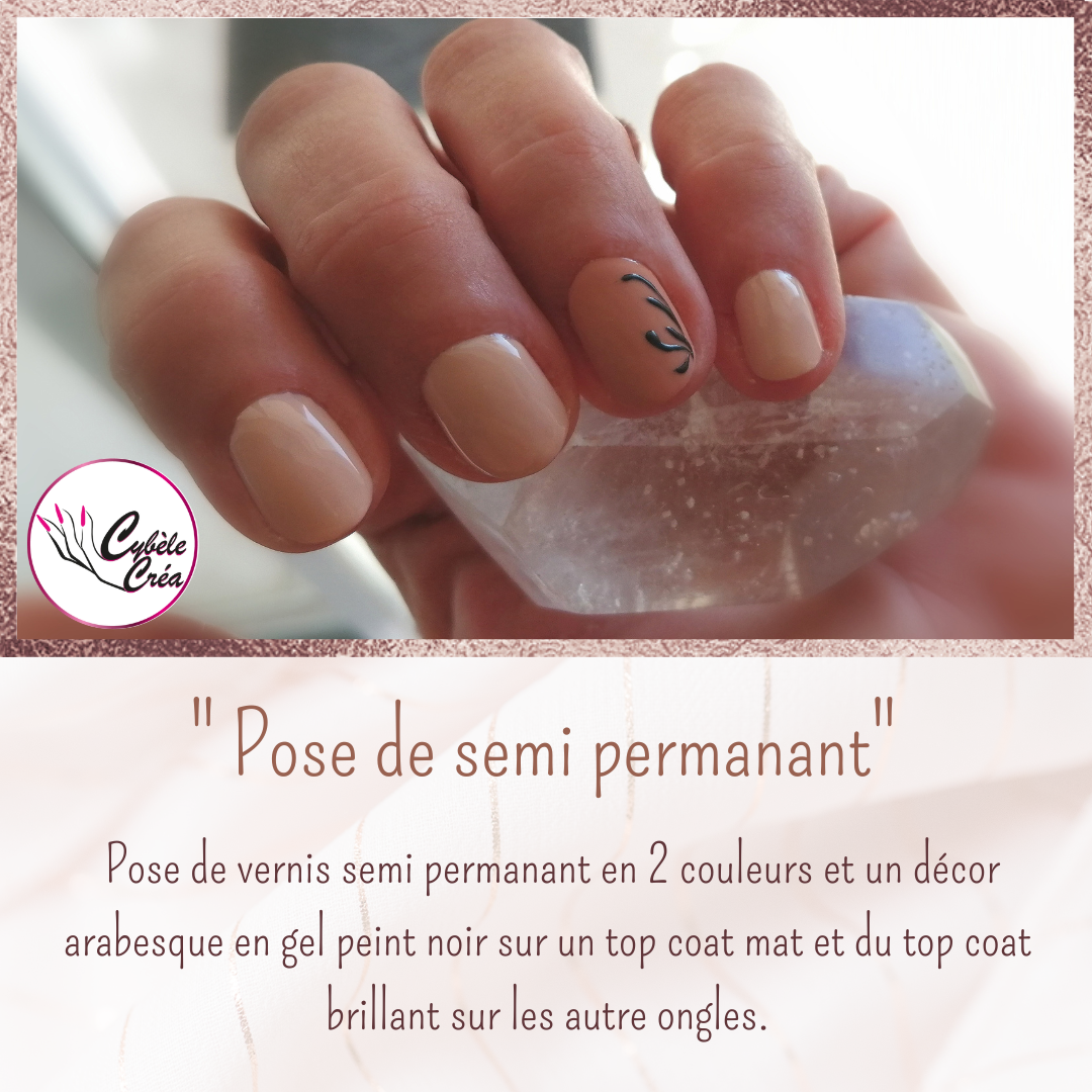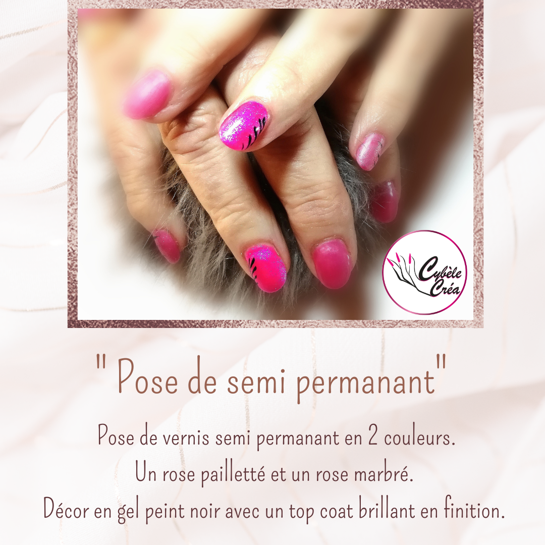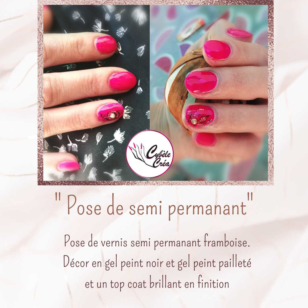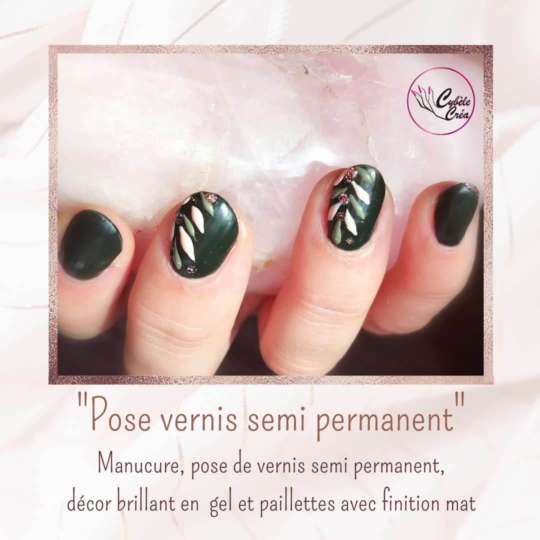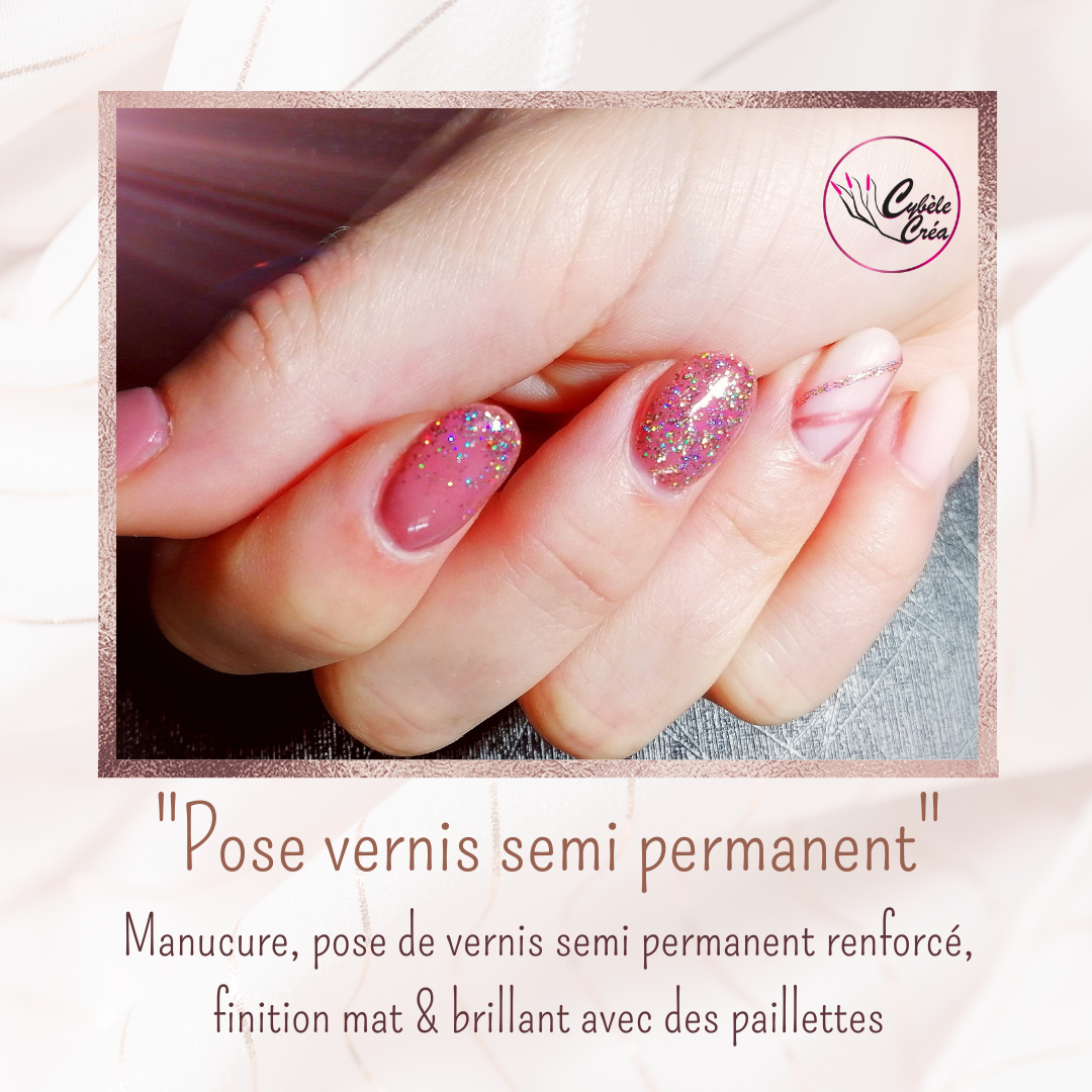 Pose de vernis semis-permanent de différentes couleurs, décor en gel, top coat, finition mate ou brillante, effet brillant (paillettes) et autres astuces pour embellir et enrichir vos ongles, Cybèle Créa saura faire preuve d’ingéniosité et d’imagination afin de parfaire votre manucure.